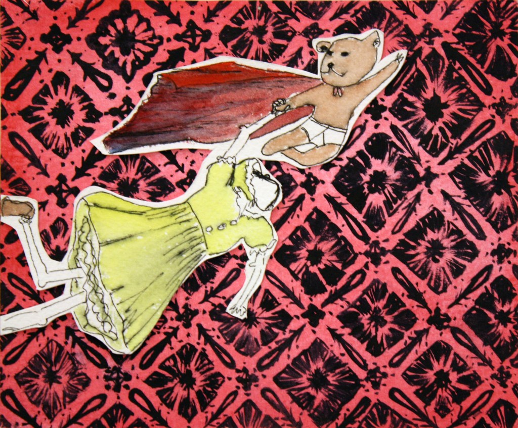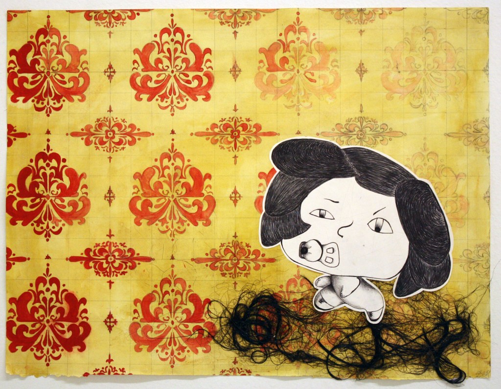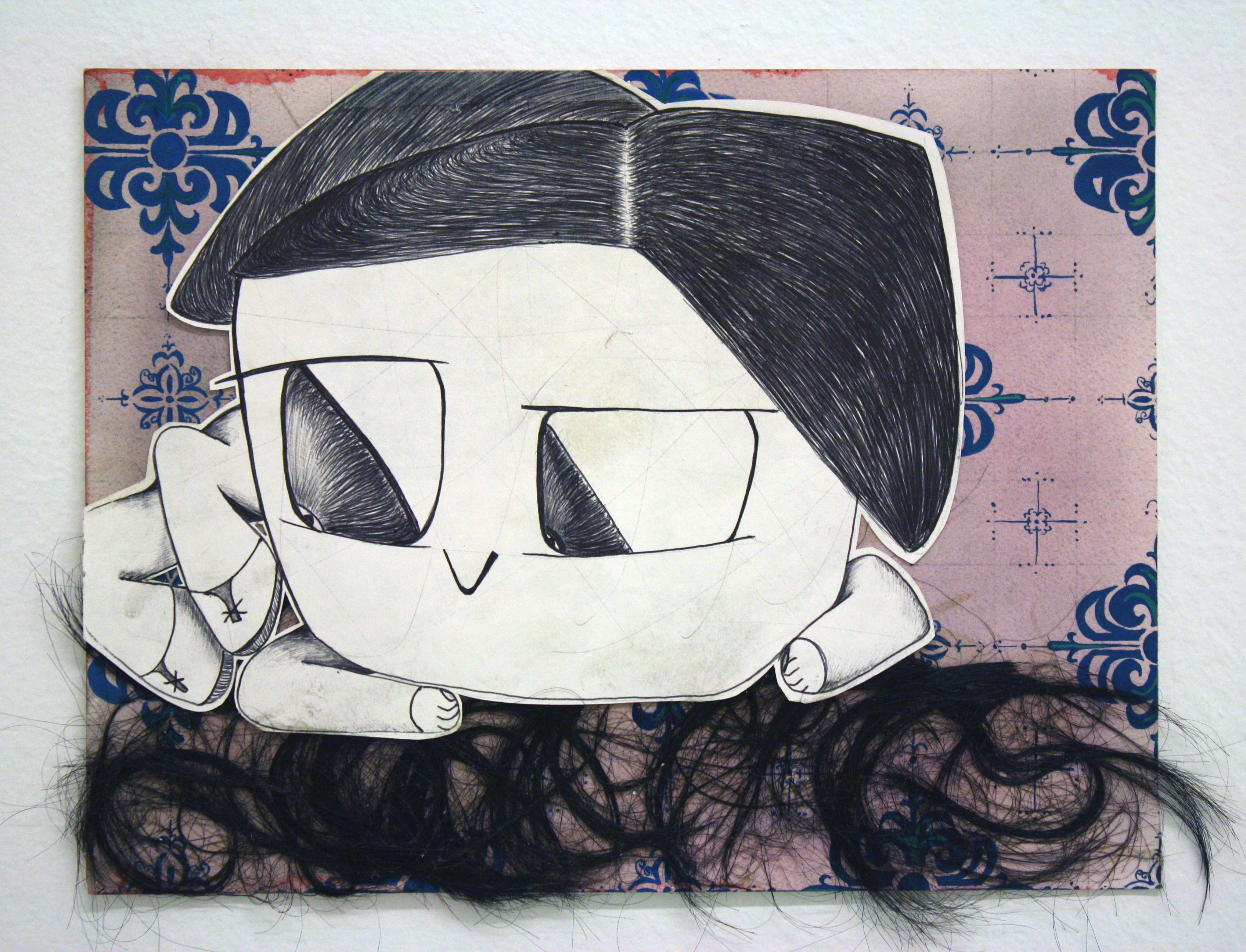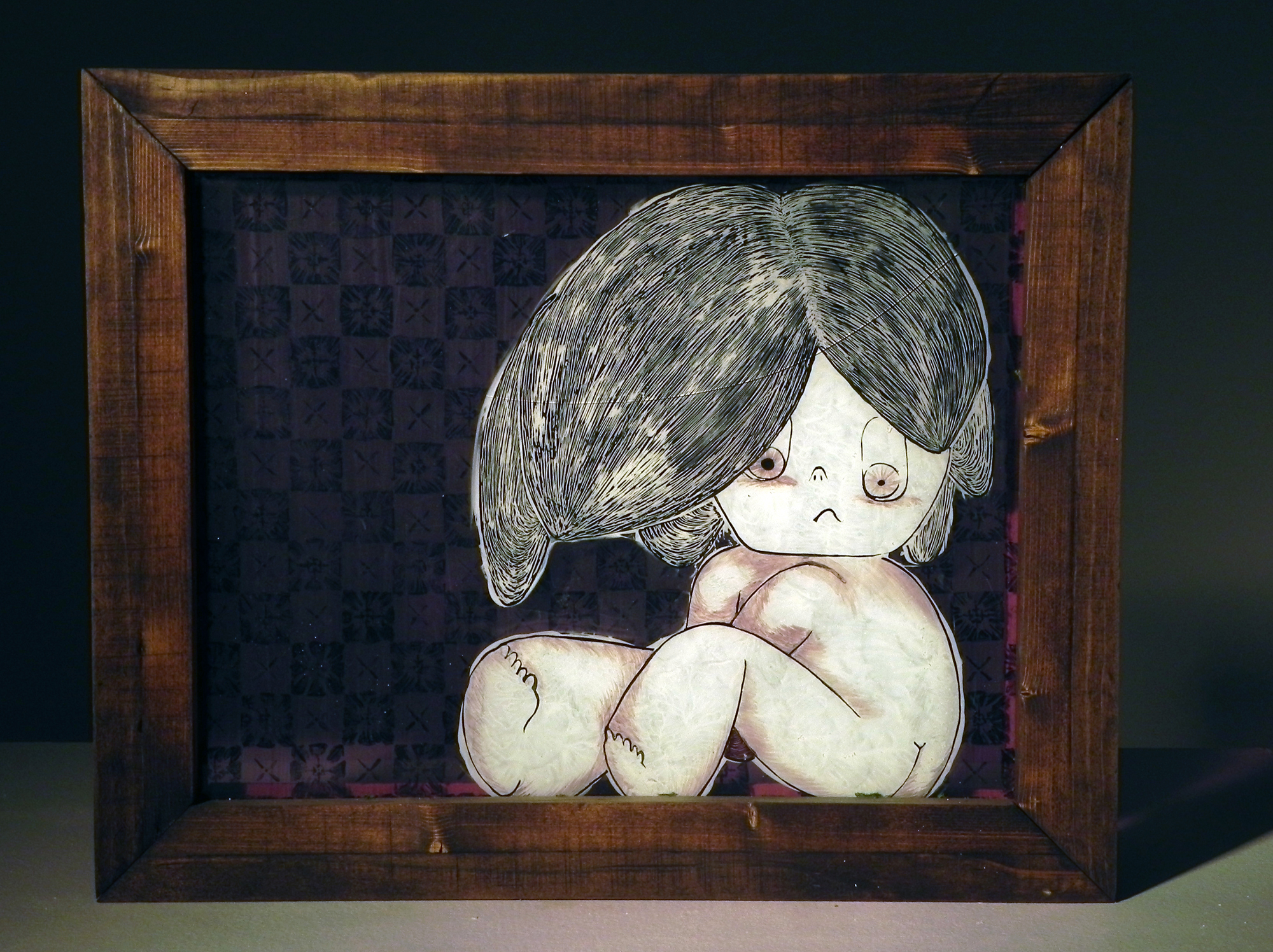 In my glass work, I create characters that embody a specific self-image. These mini self-portraits are created in moments of spontaneity, silliness, self-doubt and desperation. In this process of scribbles, I allow my mind to see what is between the lines: my emotions and irrational enjoyments/fears of life. I continue to capture these “selves” by placing them in a box (metaphorically the boxed worlds that we live in) where the “selves” exist between the 2nd and 3rd dimensions. It also allows me to see my “selves” in the context of social voyeurism: seeing how I am in society.