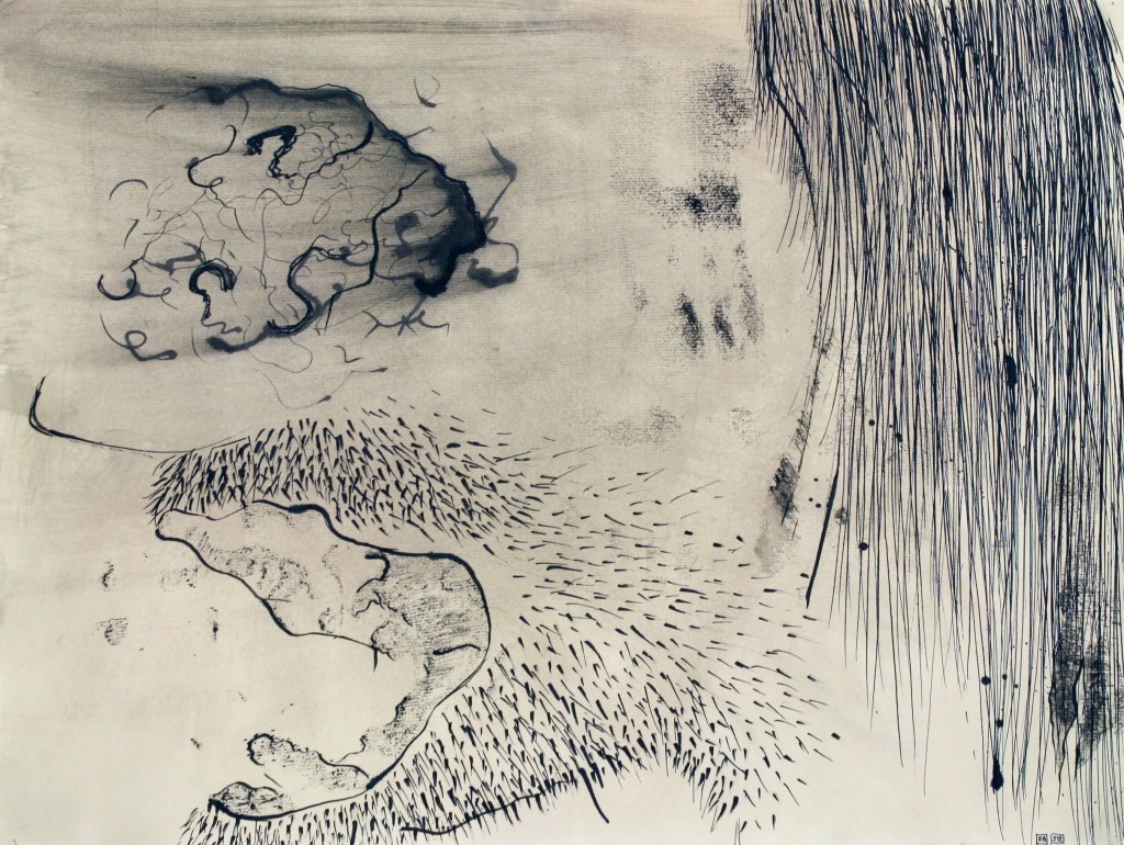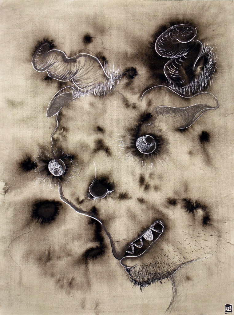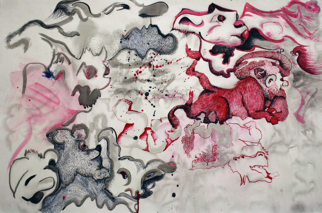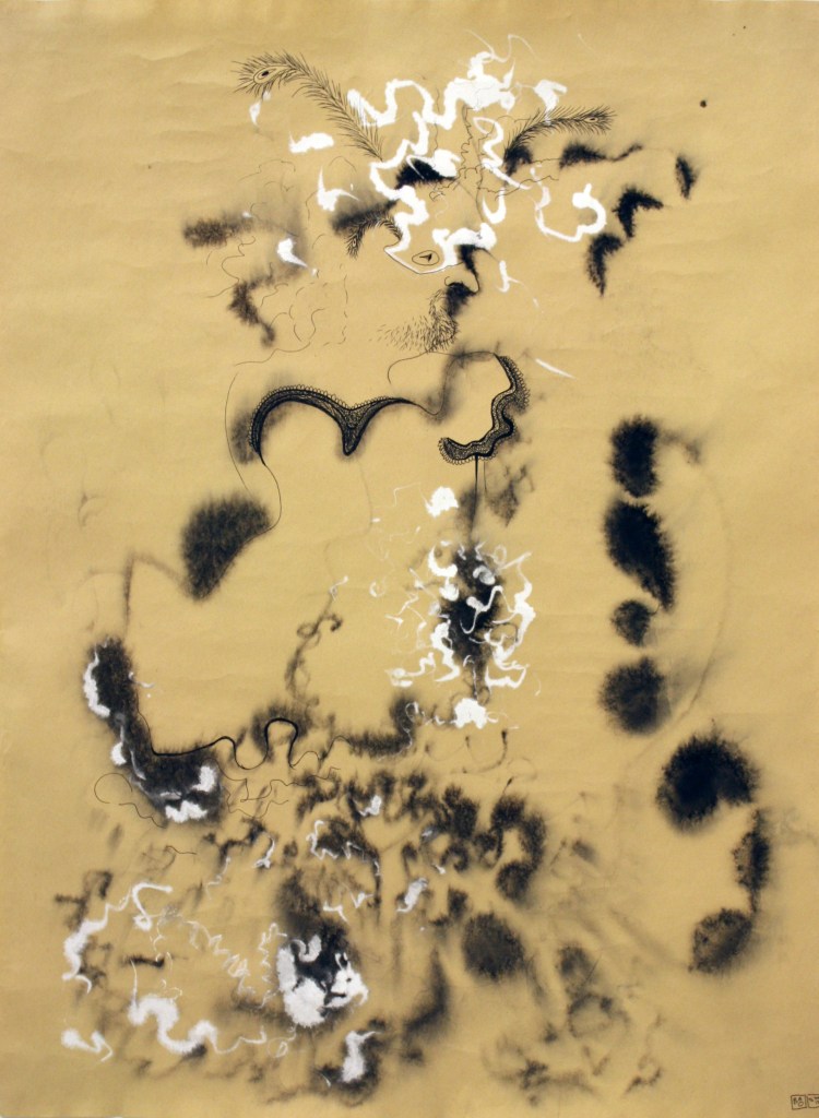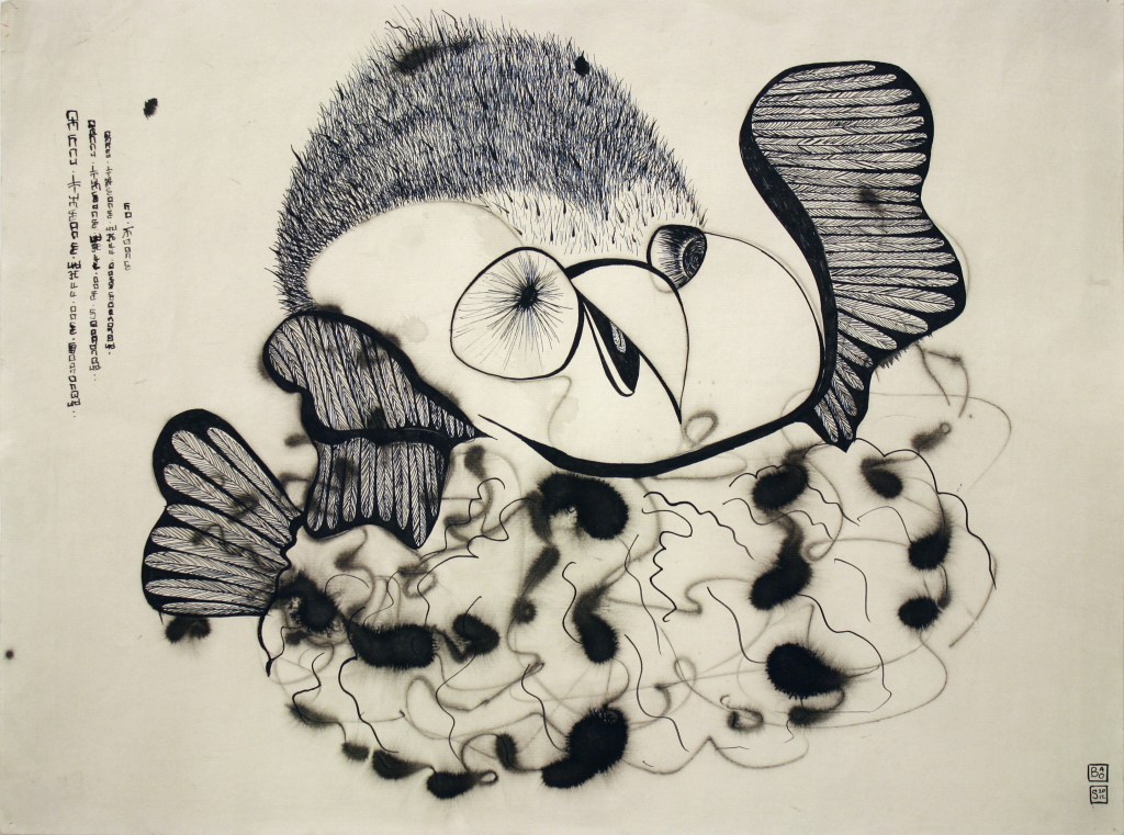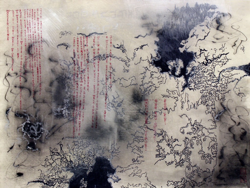As for my drawings, I continue to allow my mind to create line works that inhabit a familiarity of human/organic forms: pareidolia. It becomes a playground for looseness and impulse. I write how I feel on these drawings, using them as a place to write out my issues and problems. When I am listening to music, it also drives a source of emotion in my motion of mark making. I write the lyrics to my soundtrack along my drawing documenting the song and how I feel. I write in a font I have created to reflect my wanting for my culture to be revered as another Asian ethnicity. I continually experiment with water mediums and explore the fluidity of my emotions.